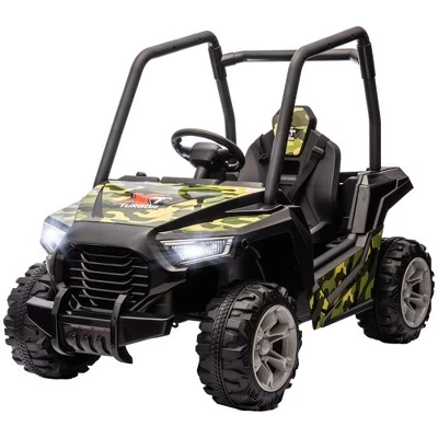 Adventure awaits with the Qaba ride in a car with a remote control! Tackle any terrain with big wheels and dual 12V motors, ensuring a thrilling off-road experience even on grass and gravel. Safety is key with a soft start and 3-point seat belt, plus the fun of a parent remote control. Ignite your child’s imagination with authentic features like USB music and LED lights.