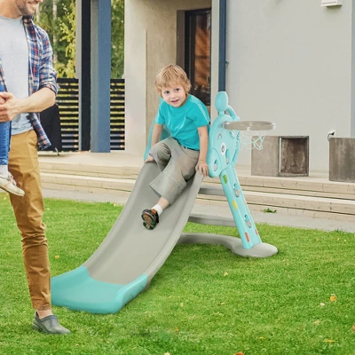 Slide, shoot hoops and climb with this multifunctional kids activity center! This kids activity center includes a slide, 1 basketball hoop, and easy-to-climb steps for many ways to play. Take the basketball hoop for kids wherever you go! The basketball hoop for kids is compact and lightweight, making it easy to store and transport from the backyard to the park and more. Keep your sweetie safe while they play! The kid’s slide has a non-slip walkway, long buffer zone, and a wide slide track with rails for added safety. The fun giraffe designs add pizzazz to your background or play room!