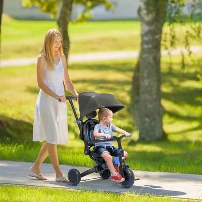 - 3-in-1 Design: Use this outdoor toy as a push tricycle, a kids tricycle, or a balance bike. In push mode, kids can enjoy a comfortable backrest, a shade canopy, and keep their legs resting. In tricycle mode, they can learn the motions of a bicycle while having a steadiness aid. In balance bike mode, they can practice what it will feel like having only two wheels, prepping them for a real bike. Adapt the toy to what your child likes best and what they need.