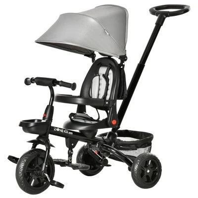 - 4-IN-1 MULTIFUNCTION: This tricycle features a detachable parent push handle, backrest, and guardrail. Switch among four forms freely that suit your kid at different ages. It also comes with two storage baskets and a pocket to put supplies you need.