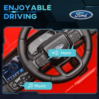 Bring home the thrill of the open road with the Qaba 12V Ford Ranger licensed electric car for kids. This exciting ride-on car includes manual and remote control driving. Bright headlights and playful music make each escapade have that hype factor. Youngsters ages 3-6 will drive over asphalt, brick, or cement roads in safety, transporting toys along the way with a rear storage compartment.