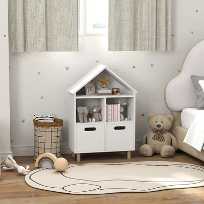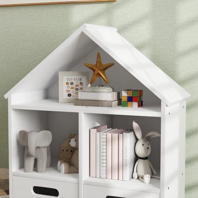 Discover the charm of Qaba’s 3-tier Montessori shelf, where lots of storage meets a delightful design.Crafted from MDF and featuring a house-shaped silhouette, it complements any room’s decor. It’s not just a bookcase but a tiny home for your child’s adventures in reading. This kid’s toy shelf suits bedrooms, playrooms, nurseries, and living rooms.