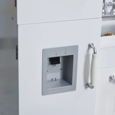 - TRUE TO LIFE: In addition to emulating the most basic kitchen appliances such as an oven and sink, this kid’s kitchen also comes with a simulated telephone and water dispenser. At the same time, the button of the stovetop can also make a turning sound when rotating, which gives the child the feel of a real kitchen.