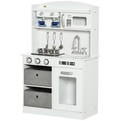 When a play kitchen has the details children can recognize from their home kitchen they know of, their play pretend will come to life. The microwave, espresso maker, stove, sink, and faucet will keep them engaged and entertained for longer by offering numerous aspects to play with. Kitchen knobs turn and click, and the stove has lights and sound. Your little ones will enjoy cooking, and serving pretend meals. This kitchen from Qaba is something kids will get to grow and learn with.